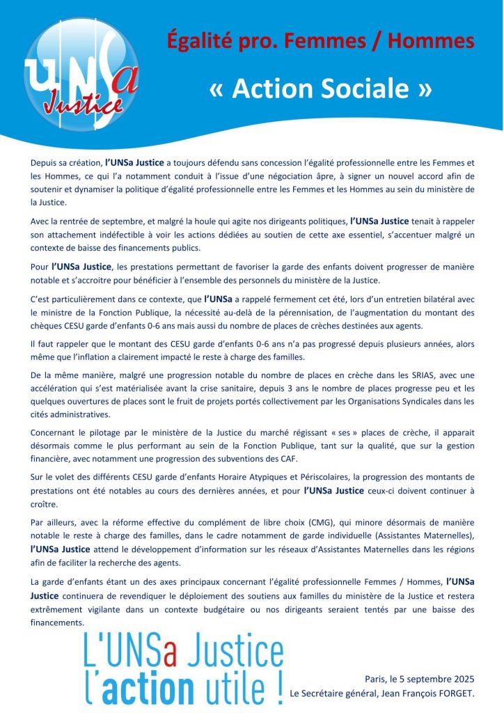 Action Sociale : égalité professionnelles Femmes / Hommes