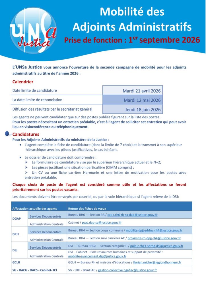 Adjoints Administratifs – 1ère campagne de mobilité 2026