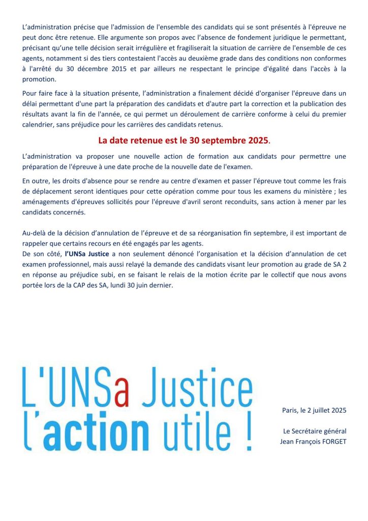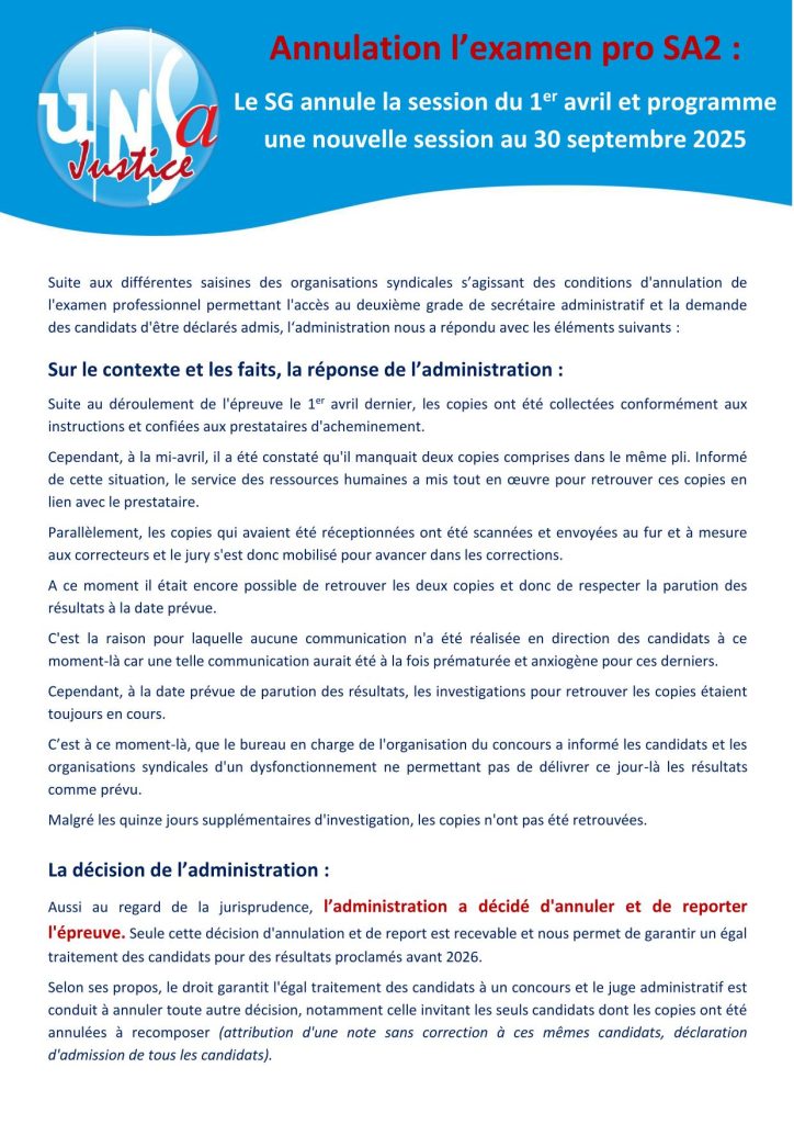 Accueil » Toute l’actualité » Annulation l’examen pro SA2 : le SG annule la session du 1er avril et programme une nouvelle session au 30 septembre 2025