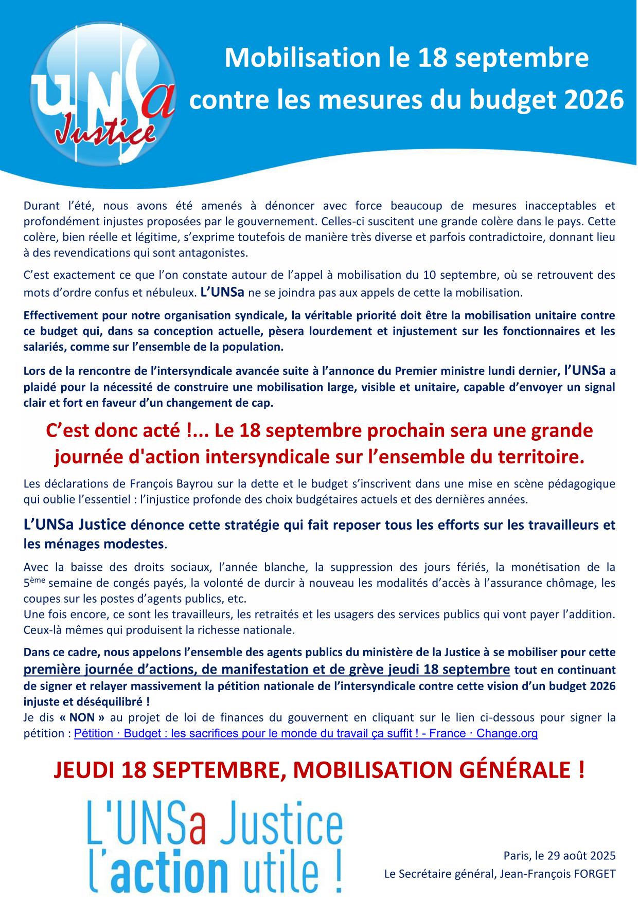 APPEL A LA MOBILISATION GENERALE le 18 septembre 2025