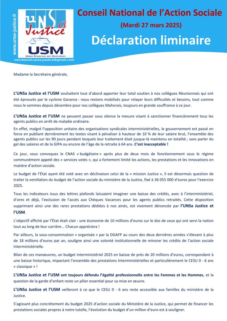 Conseil National d’Action Sociale (CNAS) du 27 mars 2025