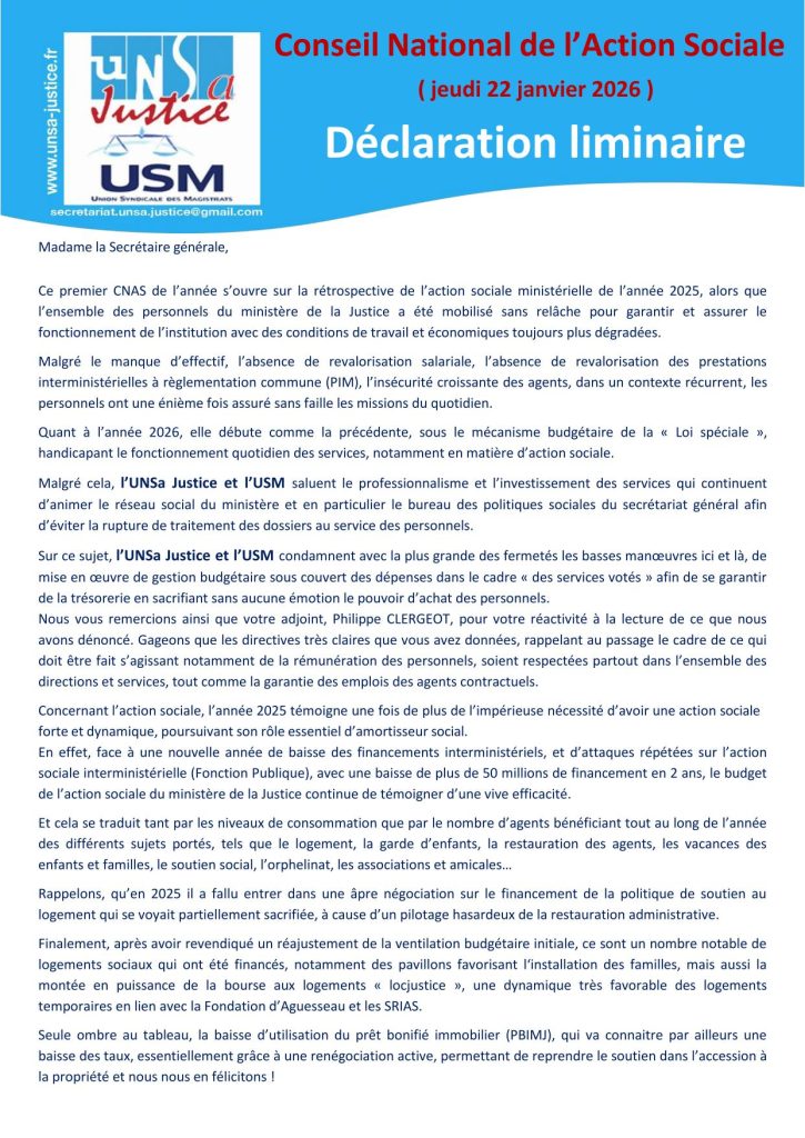 Déclaration Liminaire au CNAS du 22 janvier 2026