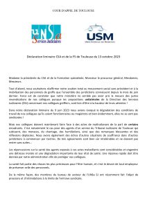 Déclaration liminaire au CSA et à la FS de la CA de Toulouse du 13 octobre 2023.