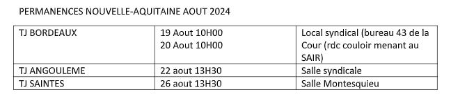 Les permanences UNSa Services Judiciaires en Nouvelle Aquitaine