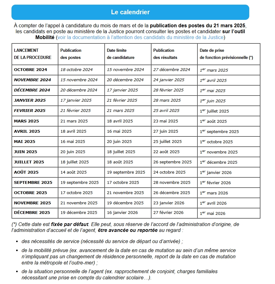 Communiqué UNSa Justice — Calendrier prévisionnel 2025 (corps communs)