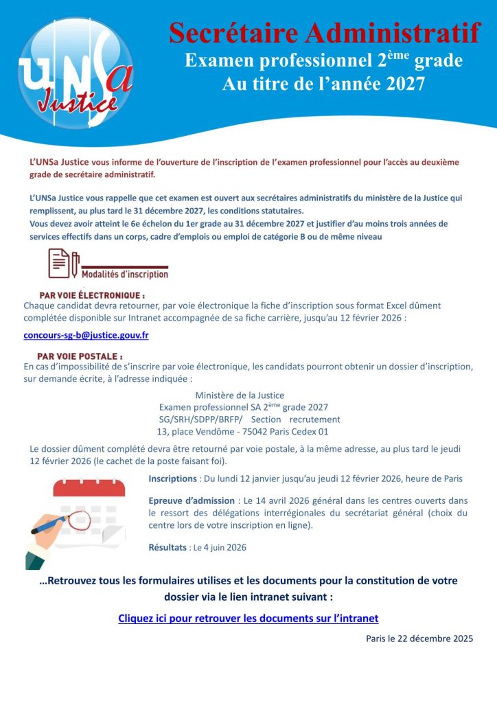 pour l’accès au 2nd grade de secrétaire administratif du ministère de la justice