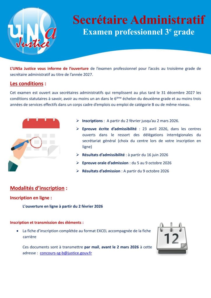 - Examen professionnel pour l’accès au 3e grade de secrétaire administratif | La Justice recrute