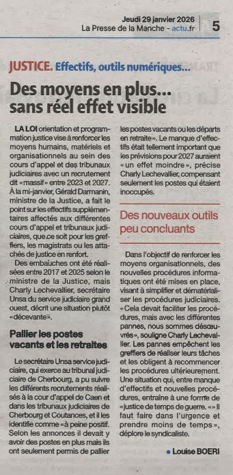 Interrogé par La Presse de la Manche, le syndicat majoritaire UNSa Services Judiciaires, apporte un démenti cinglant à cette communication huilée. Si les postes existent sur le papier, leur impact concret est jugé « décevant » ou « à peine positif ».