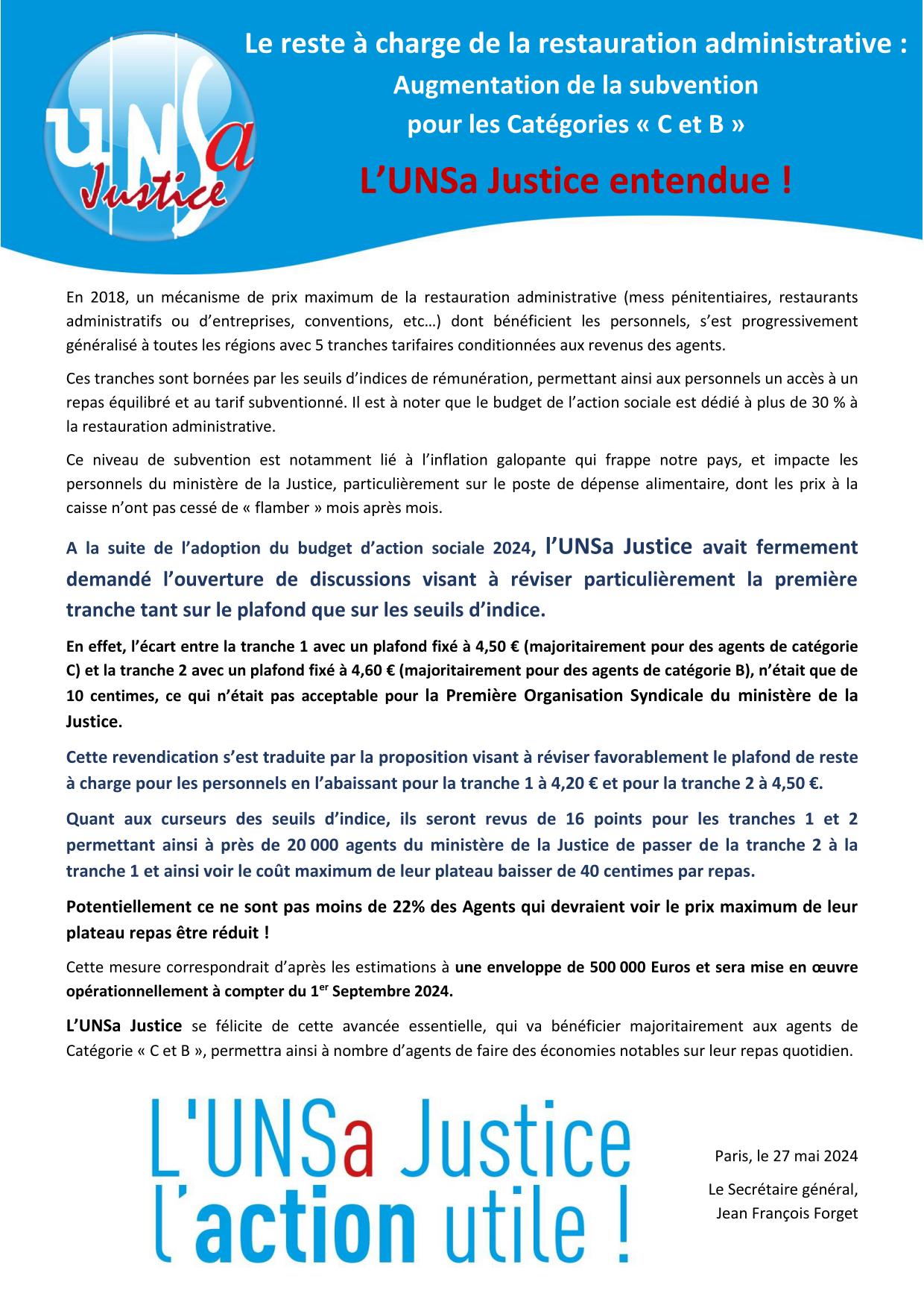 Restauration administrative : augmentation de la subvention pour les catégories C et B