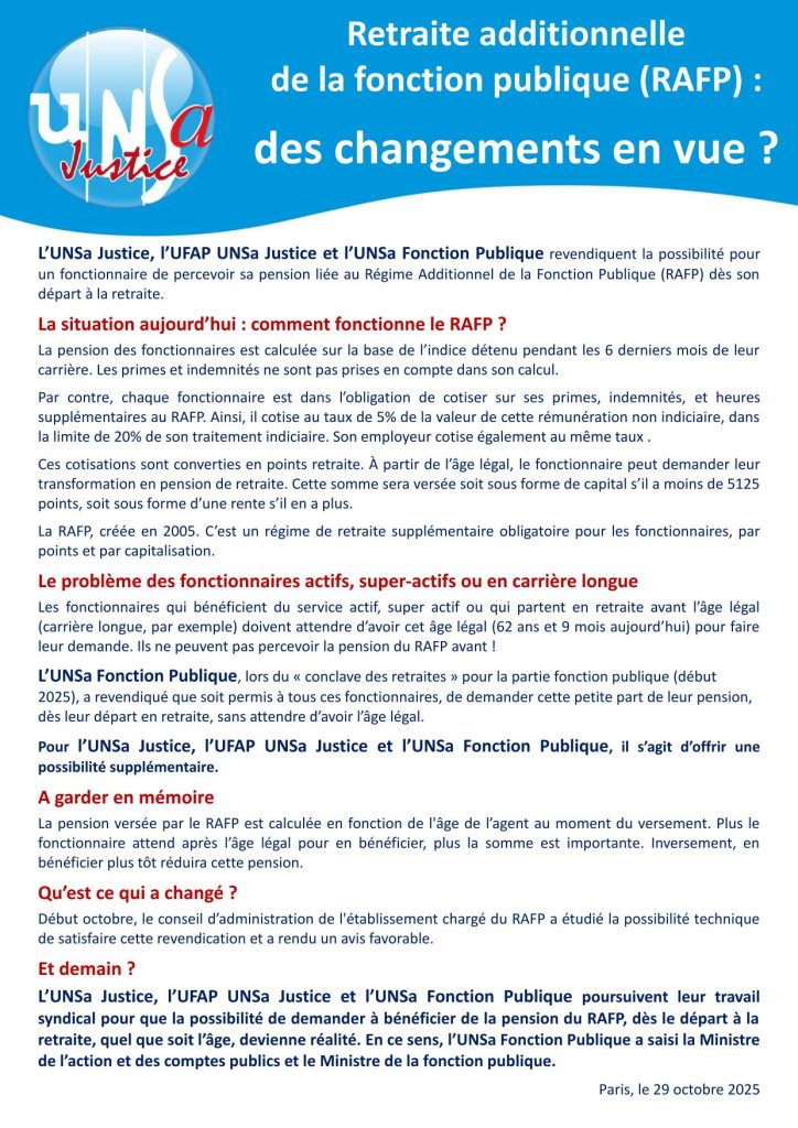 Communiqué UNSa Justice – RAFP – des changements en vue